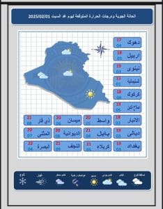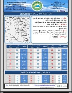 توقعات الطقس للأيام الأربعة المقبلة 31 يناير، 2025 المحليةمقالات مشابهة سامسونج تكشف عن Galaxy S26 بثورة في الذكاء الاصطناعي والكاميرا26 فبراير، 2026 متابعة ميدانية ترفع نسب إنجاز شارع كلية العلوم إلى جسر شمال الناصرية19 فبراير، 2026 تسارع تنفيذ مشروع ماء أور السياحية ومطار الناصرية18 فبراير، 2026 شاركها Facebook Twitter Stumbleupon LinkedIn Pinterest
