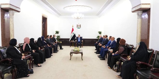 استقبل رئيس مجلس الوزراء محمد شياع السوداني أعضاء كتلة الصادقون النيابية.