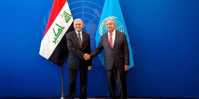 التقى رئيس الجمهورية عبد اللطيف جمال رشيد الأمين العام للأمم المتحدة أنطونيو غوتيريش، ضمن مشاركته في اجتماعات الجمعية العامة للأمم المتحدة بدورتها الثمانين، بحضور وزير الصحة صالح مهدي الحسناوي.